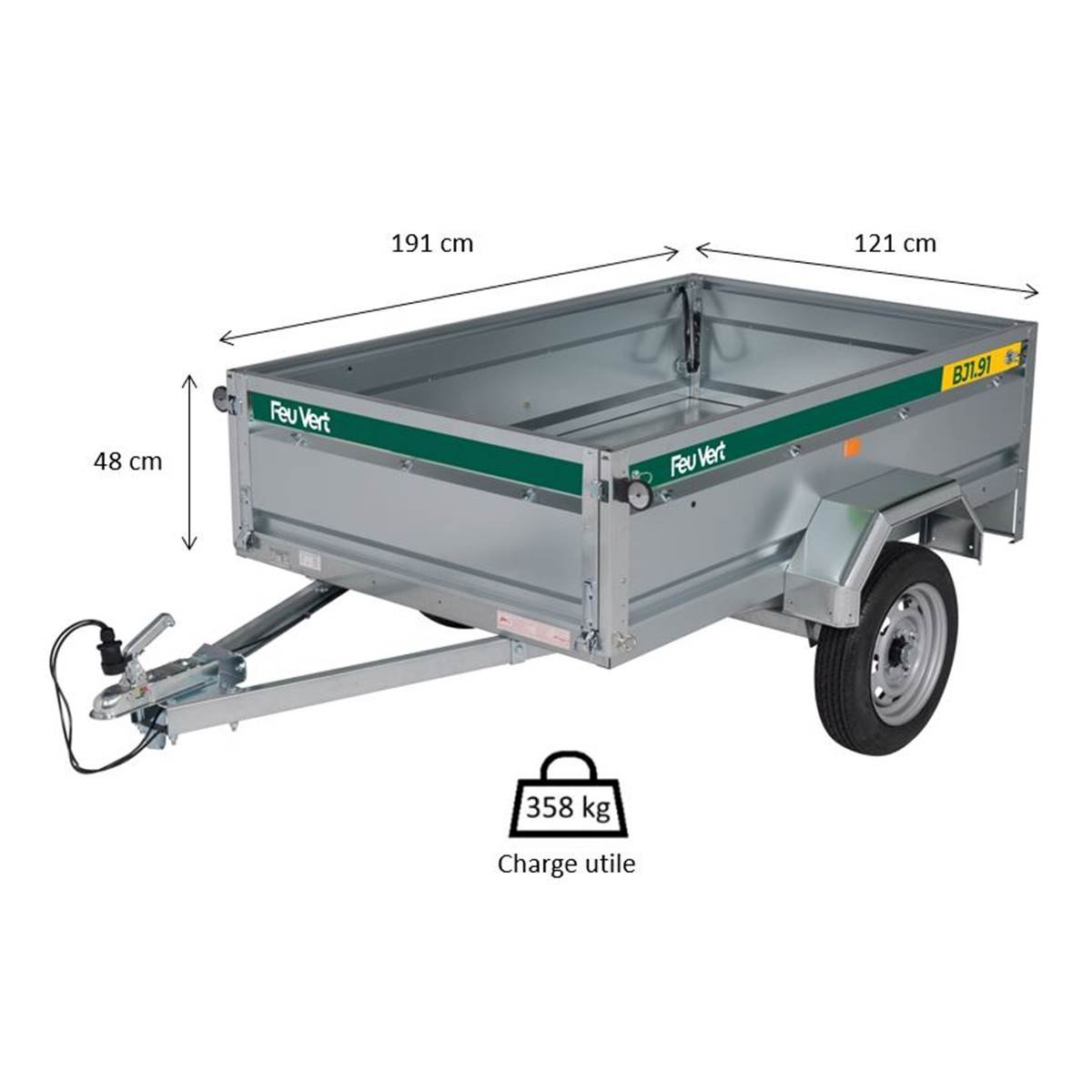 Caractéristiques de la remorque Feu Vert BJ1.91 :